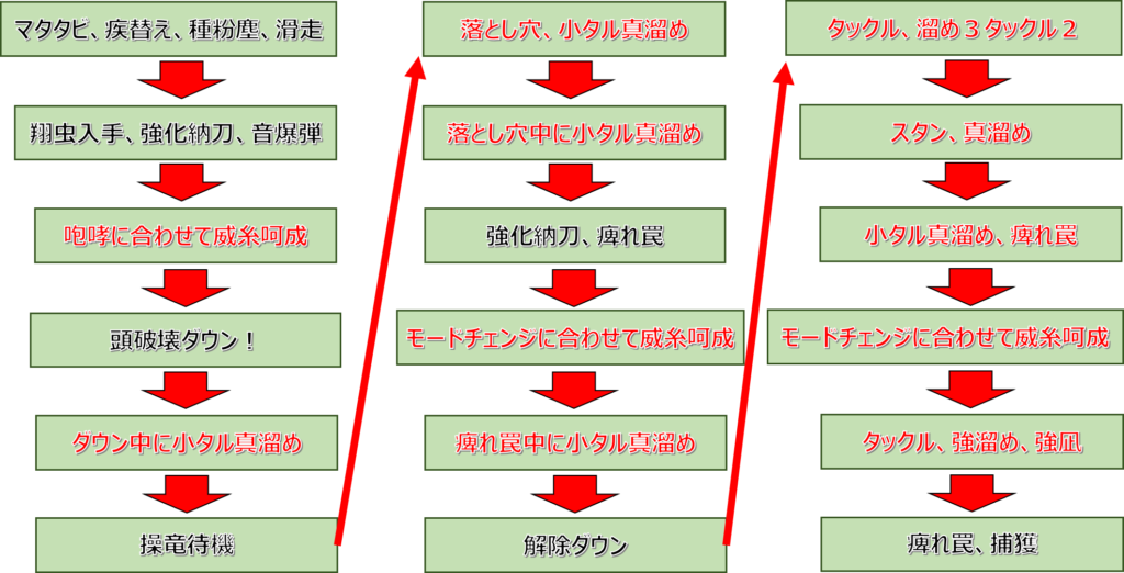 ※頭部二段階破壊チャートは操竜待機時に部位破壊が起こらないという仕様を利用するのがポイント