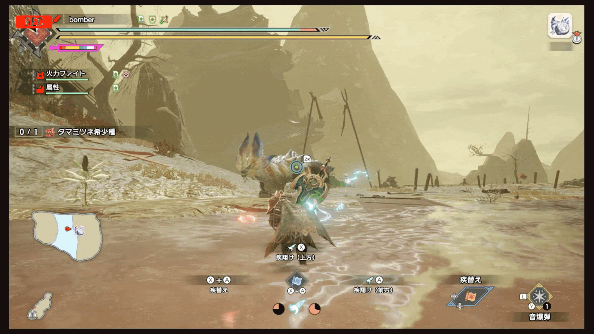 タマミツネ系統は発覚時や怒り時に左右どちらかにジャンプ移動してから咆哮します。
