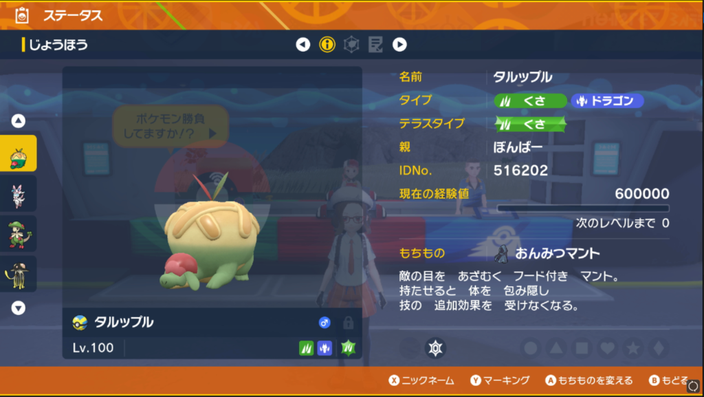 個体は6V、レイドで使用してくる技と同じものを覚えています。