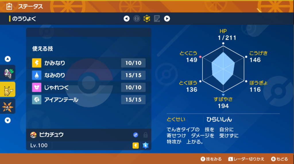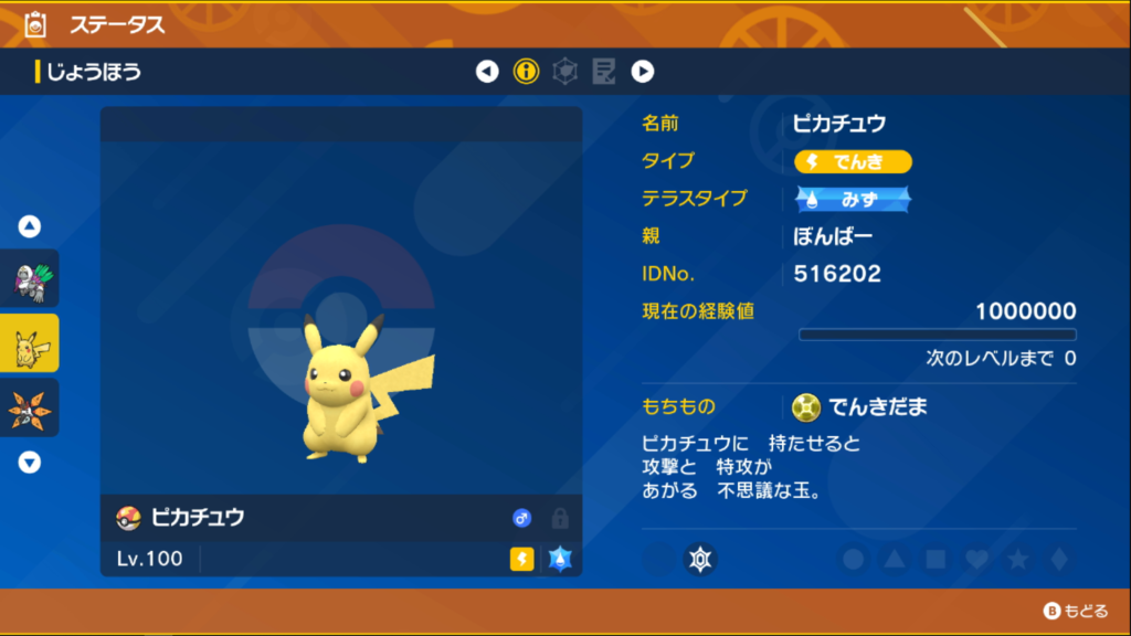 またピカチュウの火力が上昇するレアアイテム『でんきだま』も持っています!