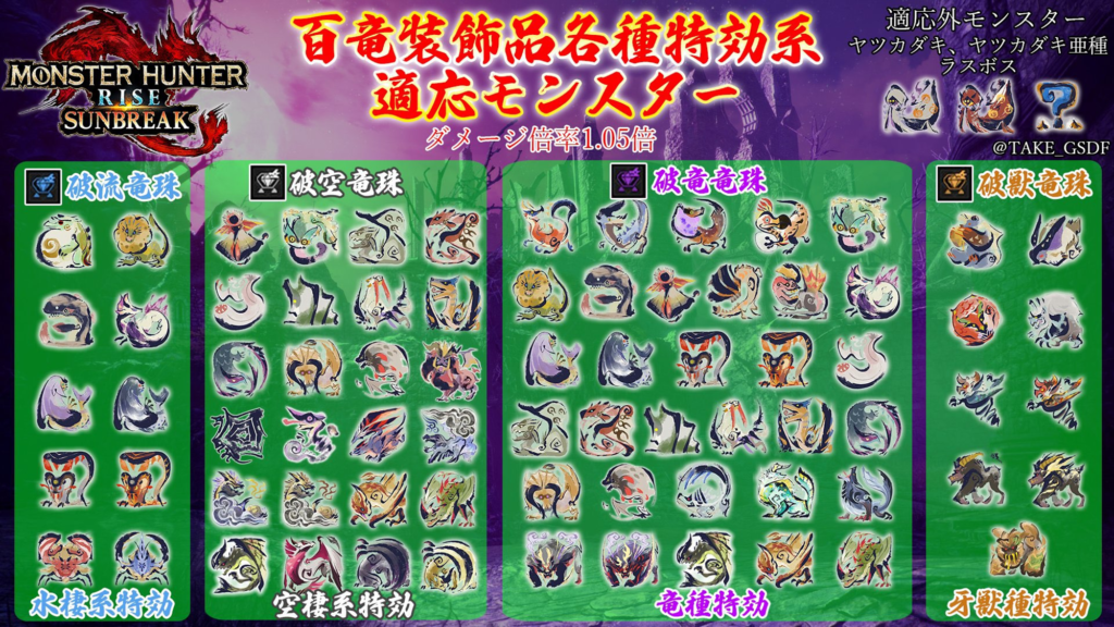 百竜装飾品 ⇒ スロットlv2以上がオススメ!特攻系が1.05倍で強い!!